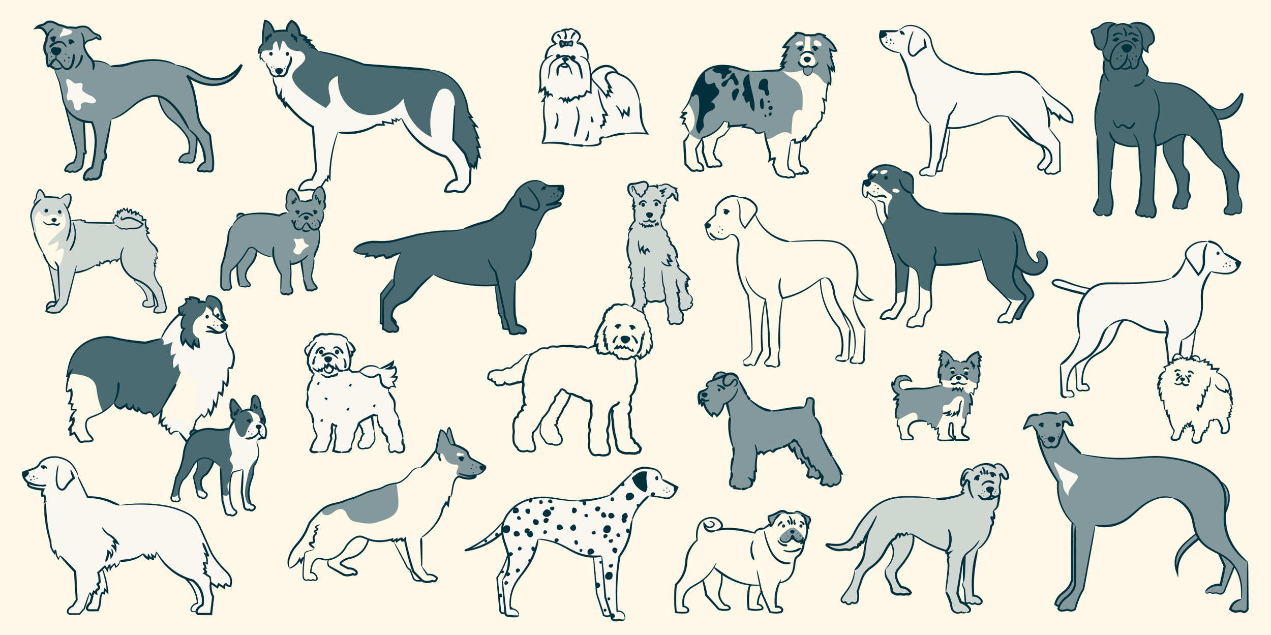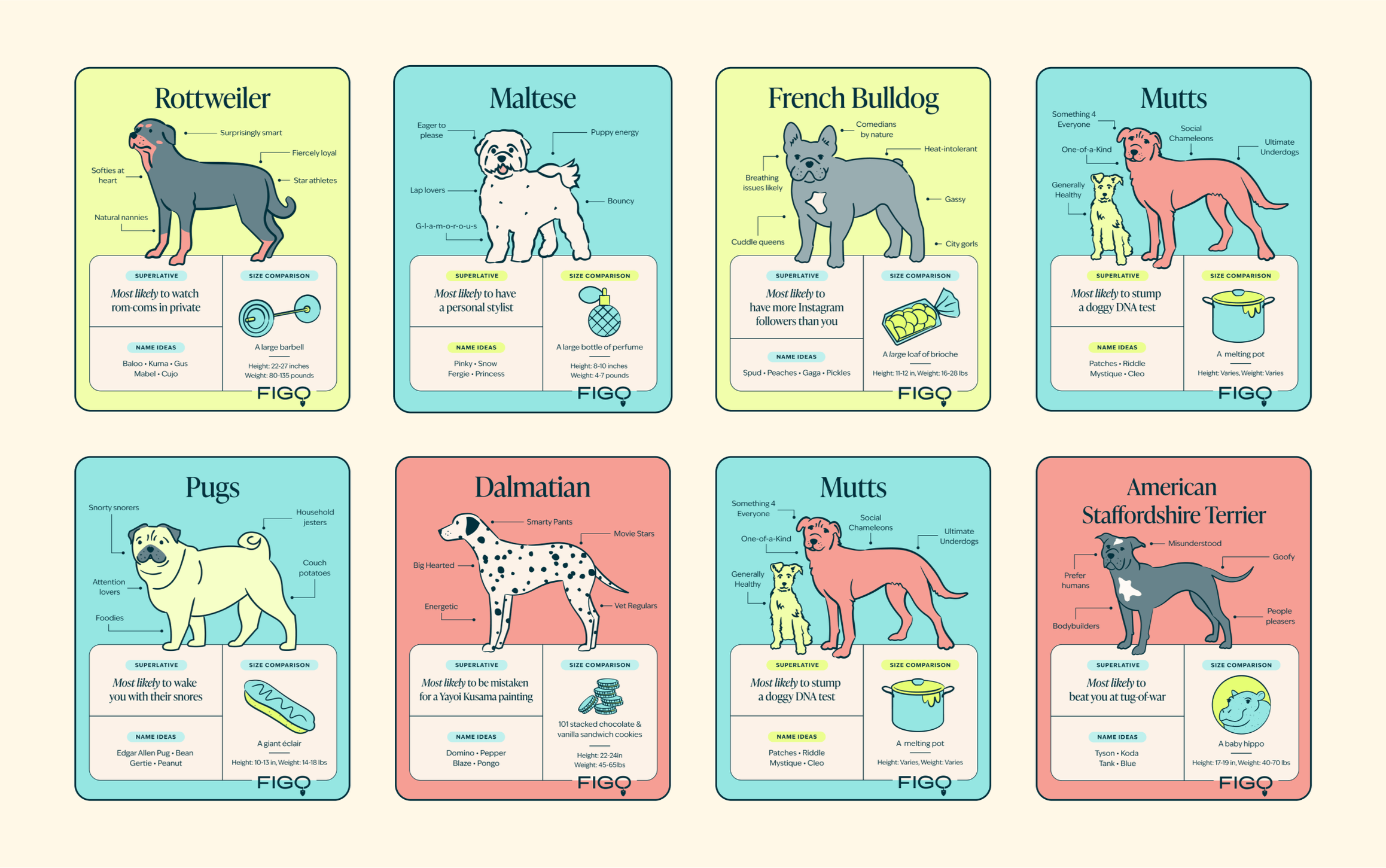 The Good, the Bad, and the Ugly Breed Guide series offers a humorous look at the personalities, common health concerns, and histories of some of the most popular dog breeds. To complement the series, we created a playful collection of dog illustrations and quirky items, each designed to highlight the unique characteristics of every breed in a fun, engaging way.
