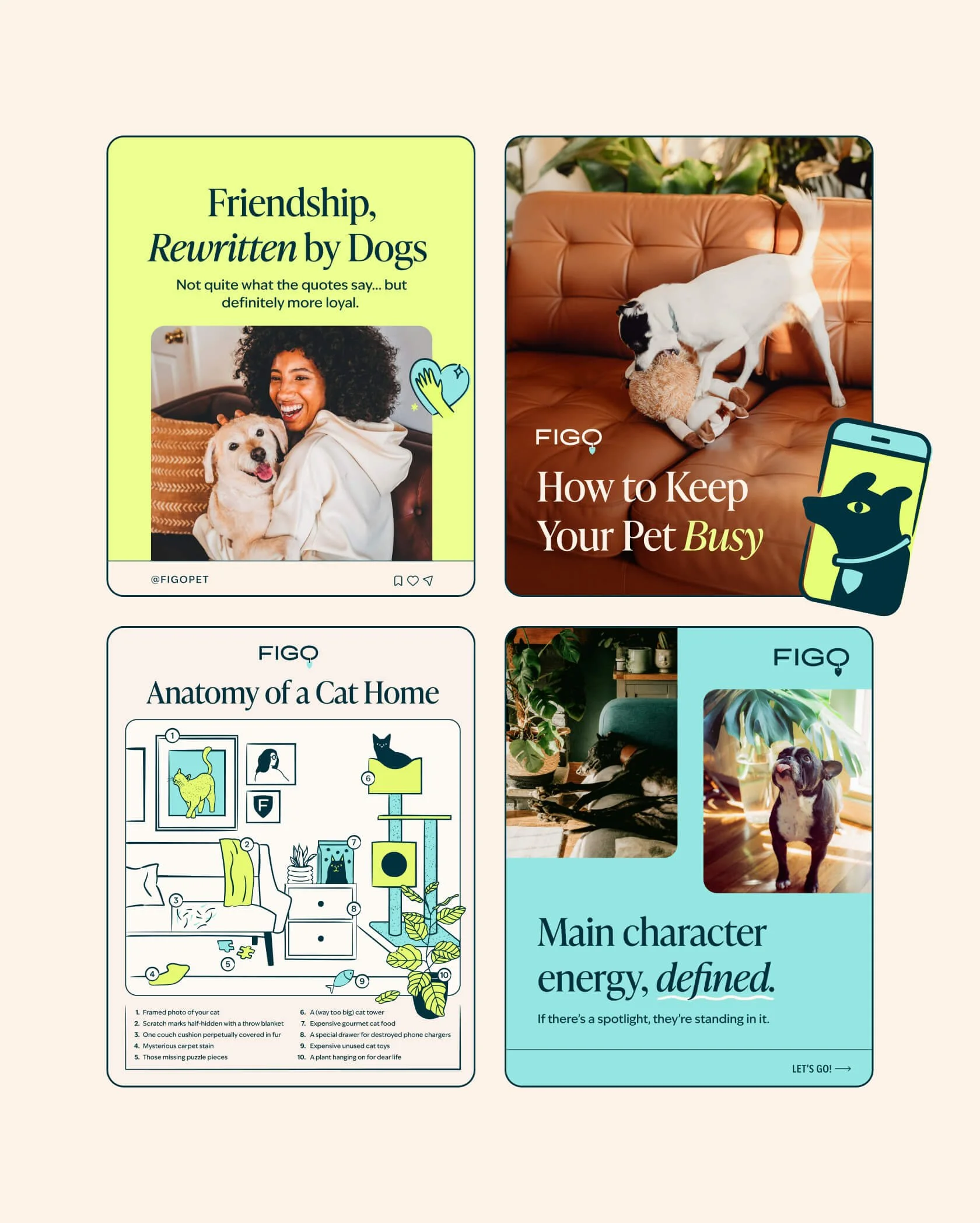 As the lead in-house marketing and brand designer for Figo Pet Insurance, I bring the brand to life across every platform, from digital ads, emails, and landing pages to social posts, blog visuals, and PR initiatives.