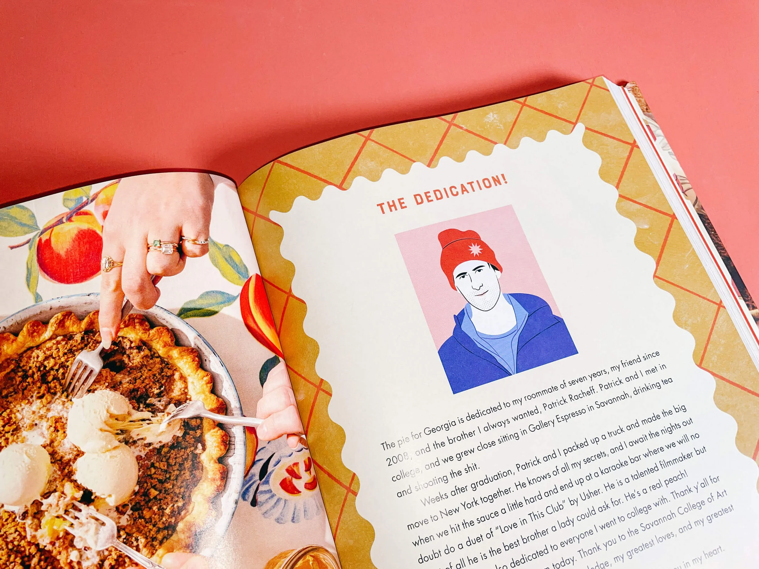 My task was to add an unexpected illustrative touch to the cookbook. I created over 50 portraits, each capturing the essence of the person receiving their pie. I also designed an ingredient-based illustrated map of the United States, evoking the charm of a classic road trip as a backdrop for Stacey's culinary journey. To guide readers, I crafted step-by-step crimp technique illustrations, making pie-making feel effortless. And for a final touch of whimsy, I illustrated a pie slice endpaper pattern to bookend the experience.